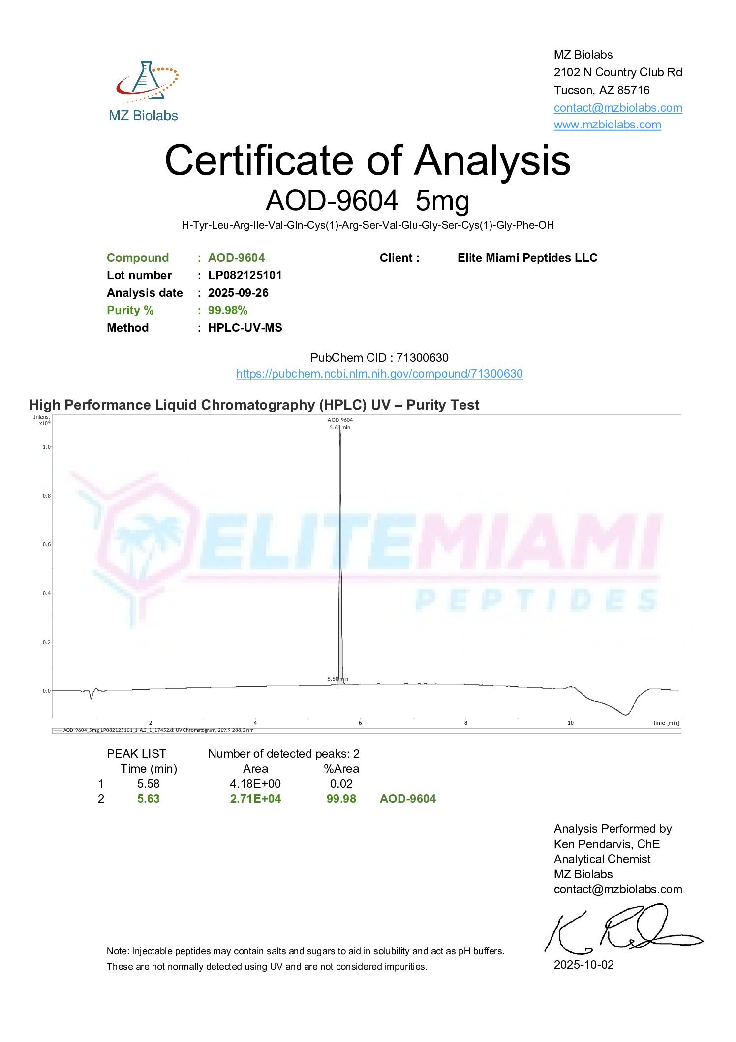 All research peptides sold on Elite Miami Peptides are intended for laboratory research purposes only. They are not intended for human consumption, therapeutic use, or clinical treatment. AOD-9604 is not classified as a prescription drug, over-the-counter medication, or dietary supplement and does not make any health claims or guarantees. Elite Miami Peptides does not sell or endorse products intended to treat or cure any diseases.