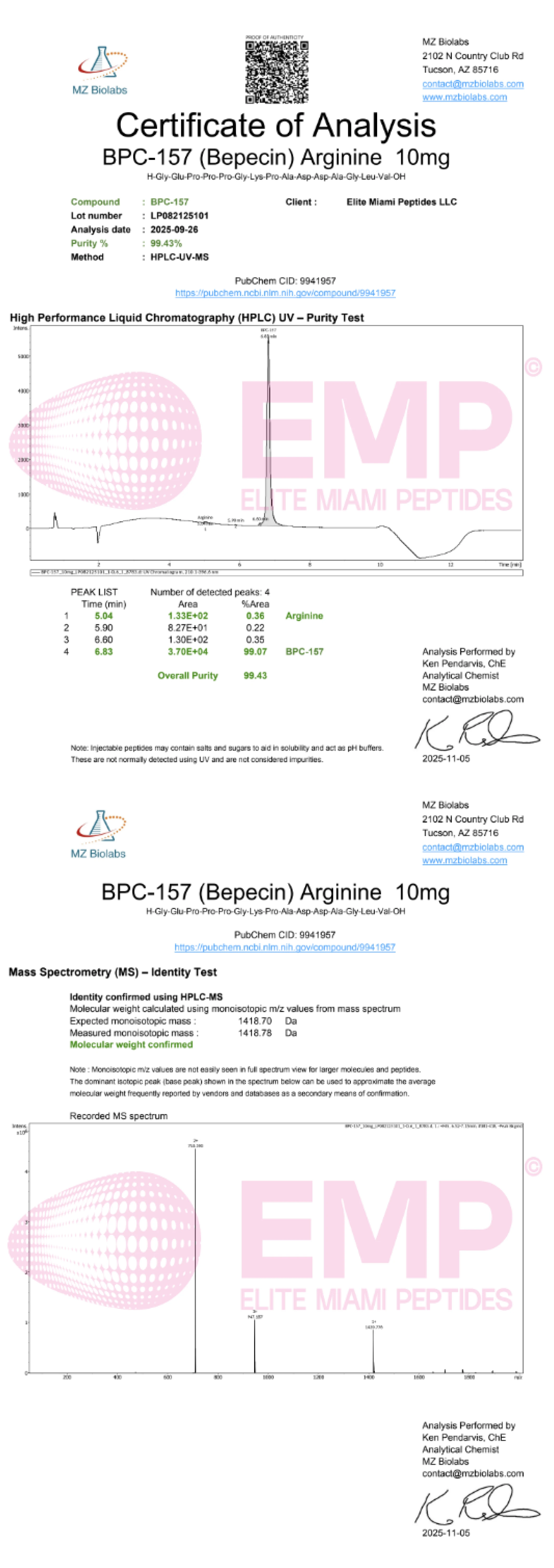 Great products, super fast shipping and so helpful. Always a great experience dealing with Elite Miami Peptides. I highly recommend EMP - these guys are great!