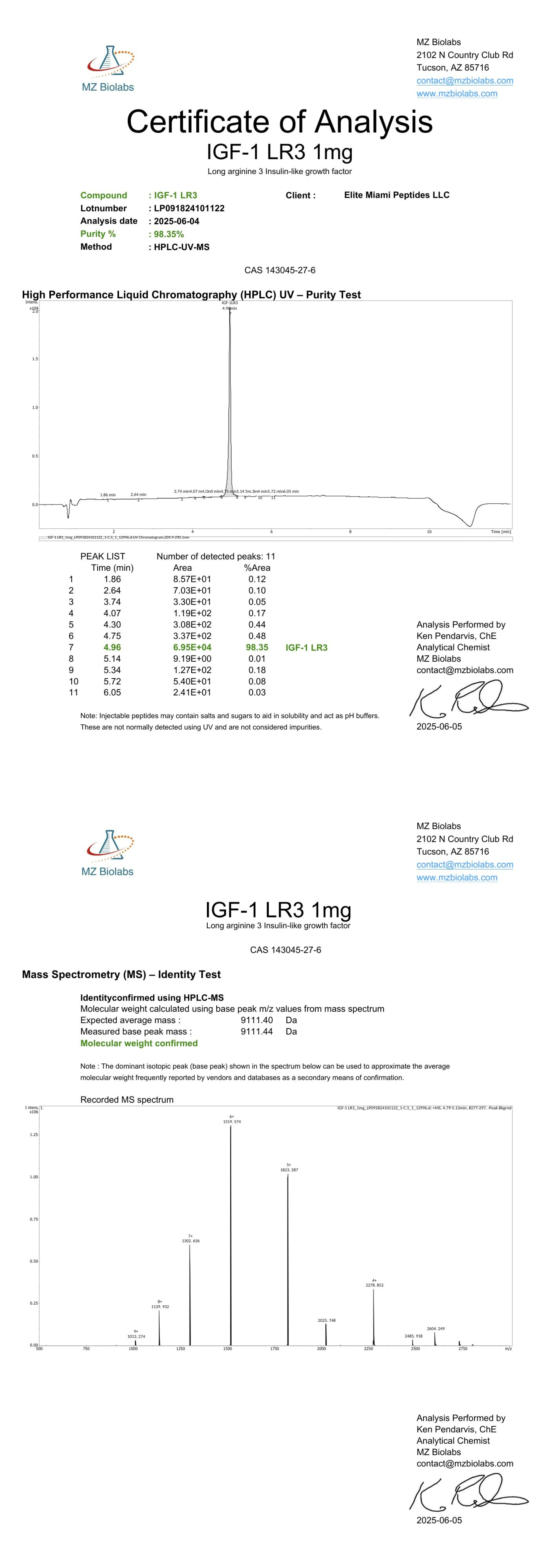 This research peptide is verified for 99%+ purity. COA: IGF-1 LR3 (1mg)
